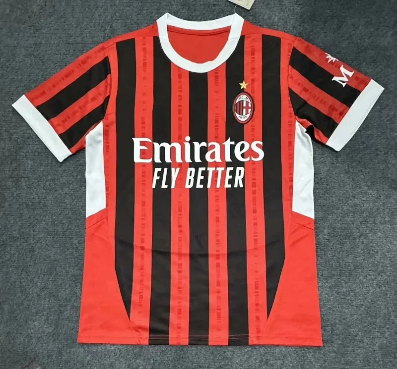 Unveiled on May 23, 2024, the kit debuted in Milan’s 24/25 Serie A opener, quickly becoming a fan favorite for its nostalgic charm and cultural significance. Available in authentic and stadium fits via the club’s official stores and PUMA platforms, this jersey is more than matchwear—it symbolizes AC Milan’s 125 years of glory, unity with fans, and the perfect fusion of tradition and innovation in the 24/25 season.