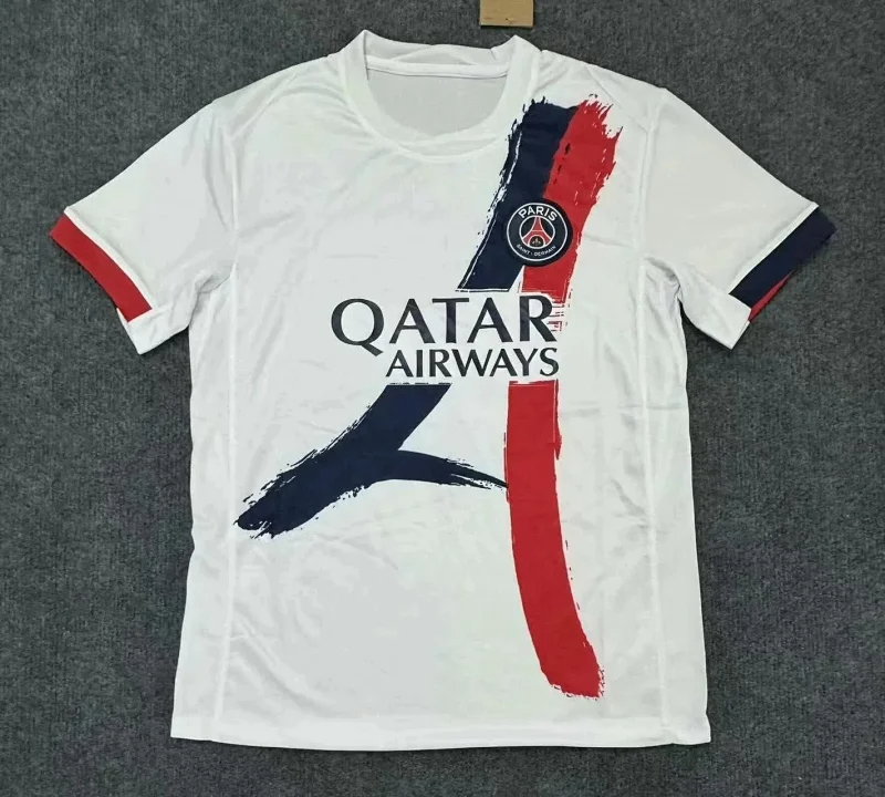 Aesthetically, the kit retains PSG’s signature tricolor (red, white, blue) while offering a fresh look. The crisp white base serves as the perfect canvas for the bold diagonal stripes, with refined colored cuffs enhancing the visual harmony. The club’s crest is heat-transferred in premium quality, and Nike’s Swoosh logo complements the color scheme. A customized version designed by global graffiti artist Tyrsa was also released, adding an urban art touch that reflects Paris’s vibrant creative scene.